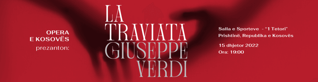 Një ndër veprat më ikonike të mjeshtrit të operës Giuseppe Verdi, do të shfaqet edhe në Prishtinë!Produksioni i parë i “LA TRAVIATA” nga Opera e Kosovës në bashkëpunim me Operën Shtetërore të Stara Zagorës (Bullgari), Teatrit të Operës dhe Baletit në Tiranë (Shqipëri) dhe Filharmonisë së Kosovës – premierë më 15 dhe 17 dhjetor 2022.
